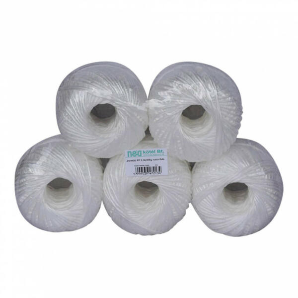400 grammos, fehér színű polipropilén (PP) anyagból készült zsineg.